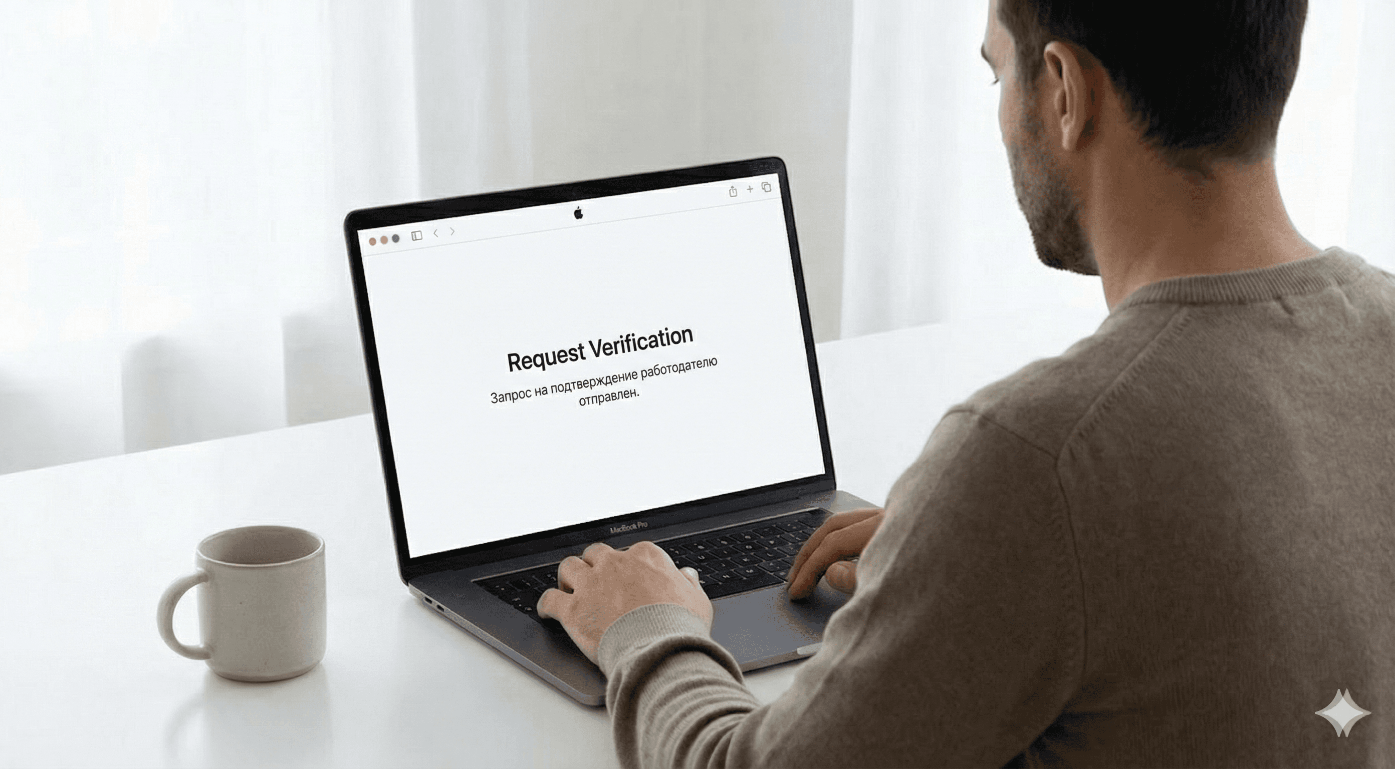 Вы отправляете запрос на подтверждение выбранному работодателю по email. Работодатель подтверждает только факт работы, период и вашу роль в компании.